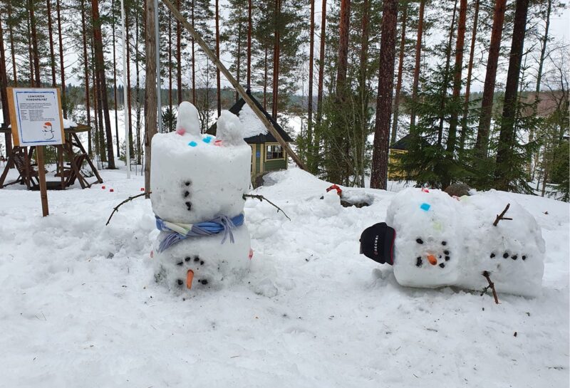 - lumileikkejä – lumiukkomuottien avulla luomme patsaita